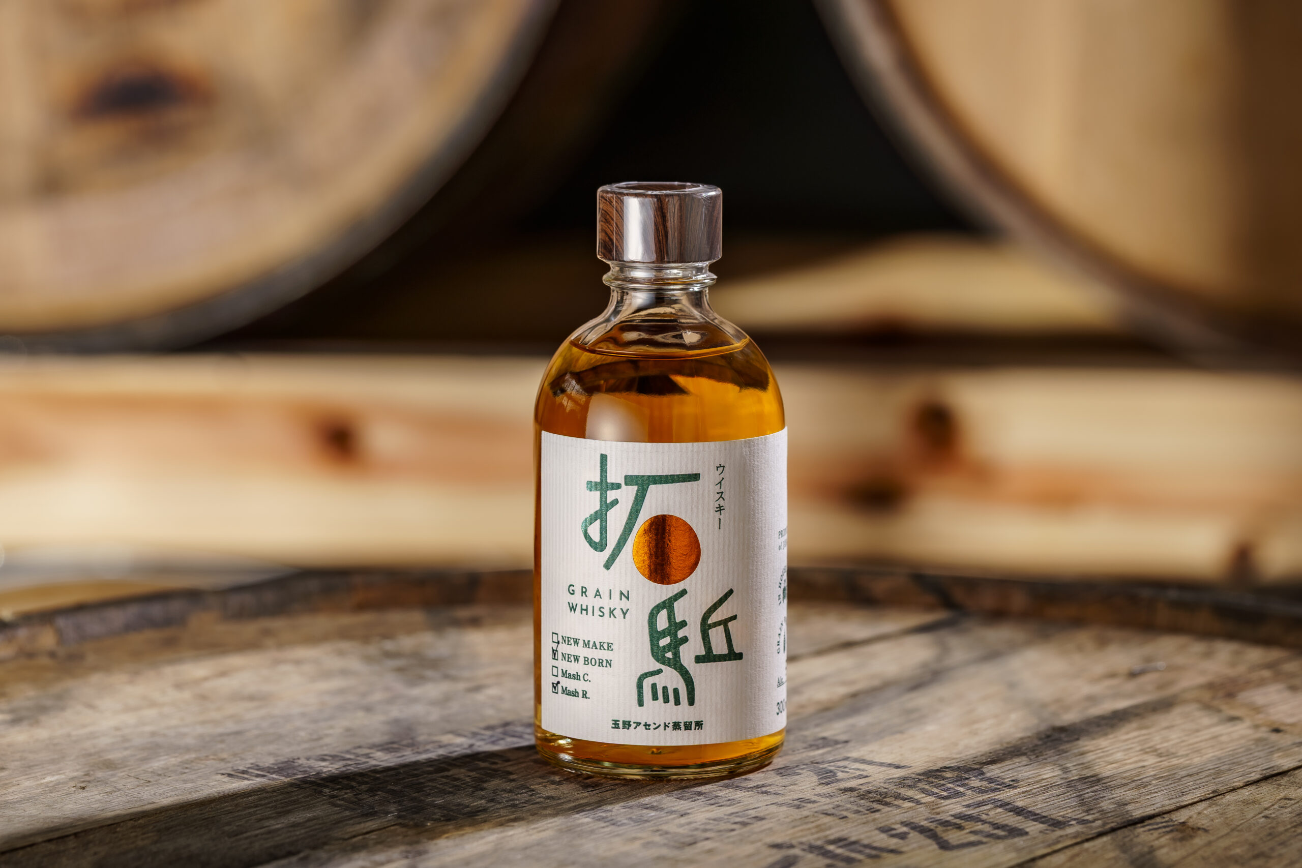 原材料:デントコーン、ライ麦、麦芽(国産原料100%) 容量:300ml アルコール度数:58% タイプ:シングルグレーンウイスキー(ニューボーン)